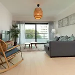 Ez a 90 m^2-es ingatlan terasszal egy 9 perces sétára fekszik a Praia da Rocha-partja területétől.